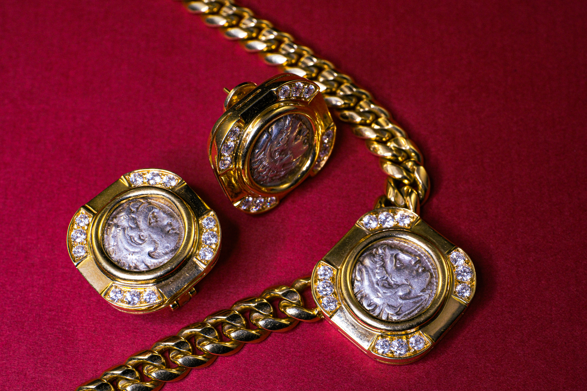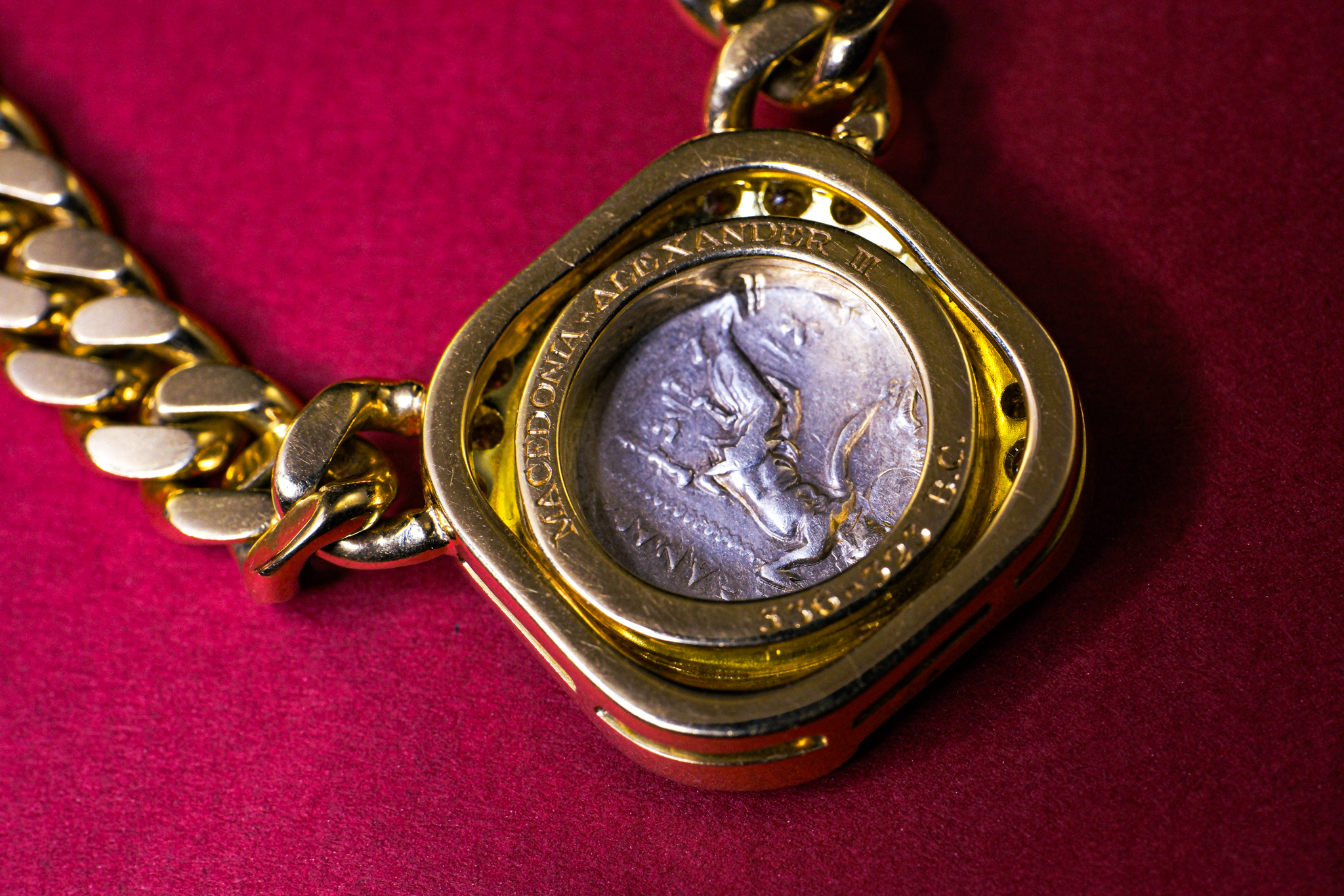 Bvlgari Monete Necklace with An Ancient Macedonian Coin dated the 4th century BCE, depicting Alexander the Great.