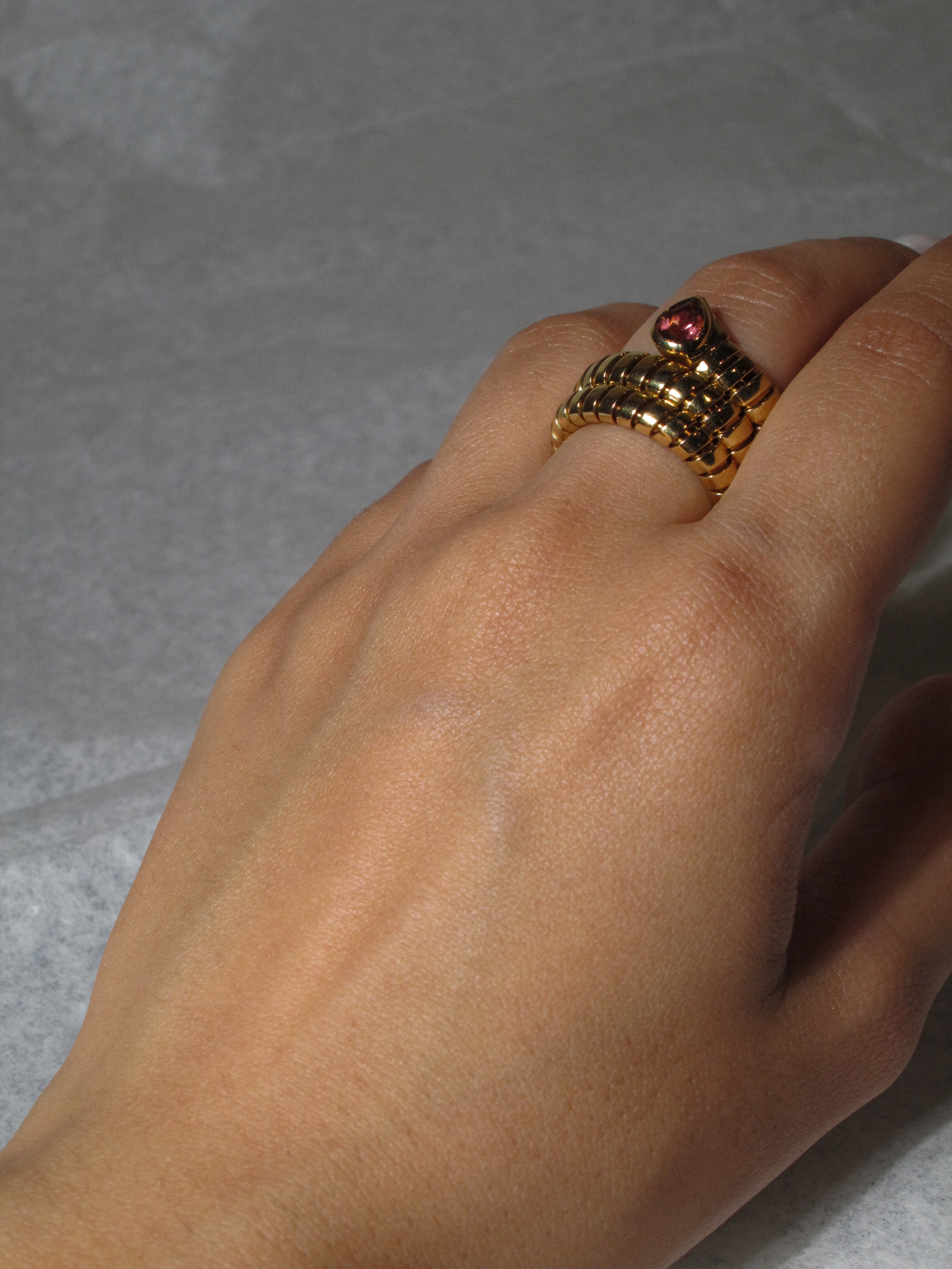 Bvlgari Tubogas Serpenti ring with Rubellite, 18k Yellow Gold, c. 1980