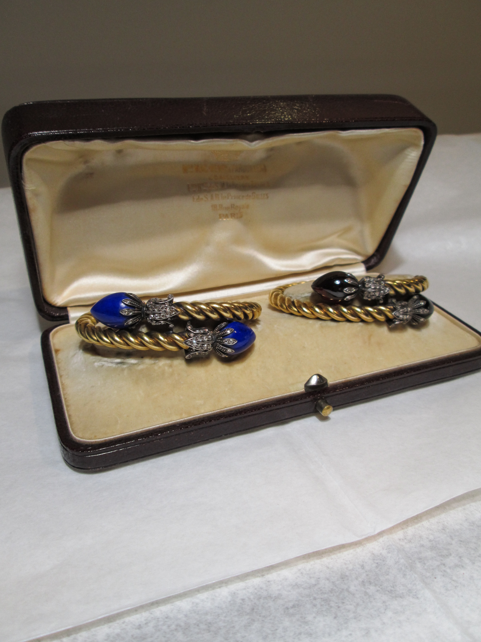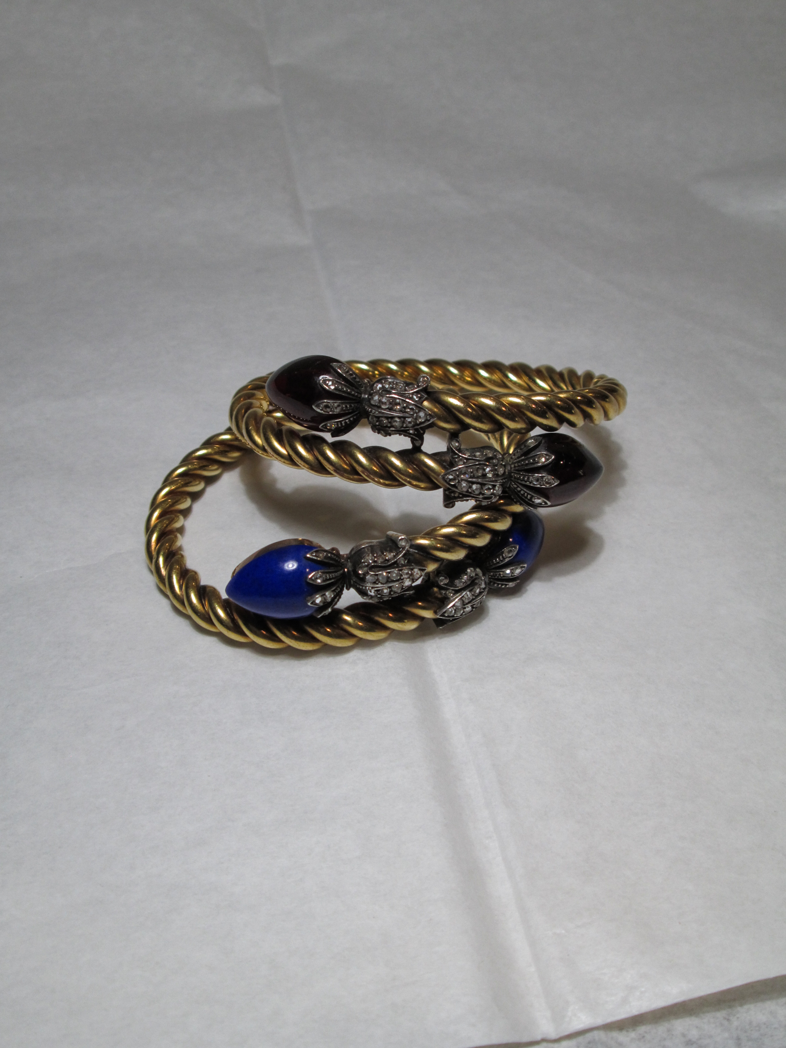 Lapis Lazuli and Garnet bracelets in Yellow Gold with Rose-cut Diamonds set in Silver, c. 1760