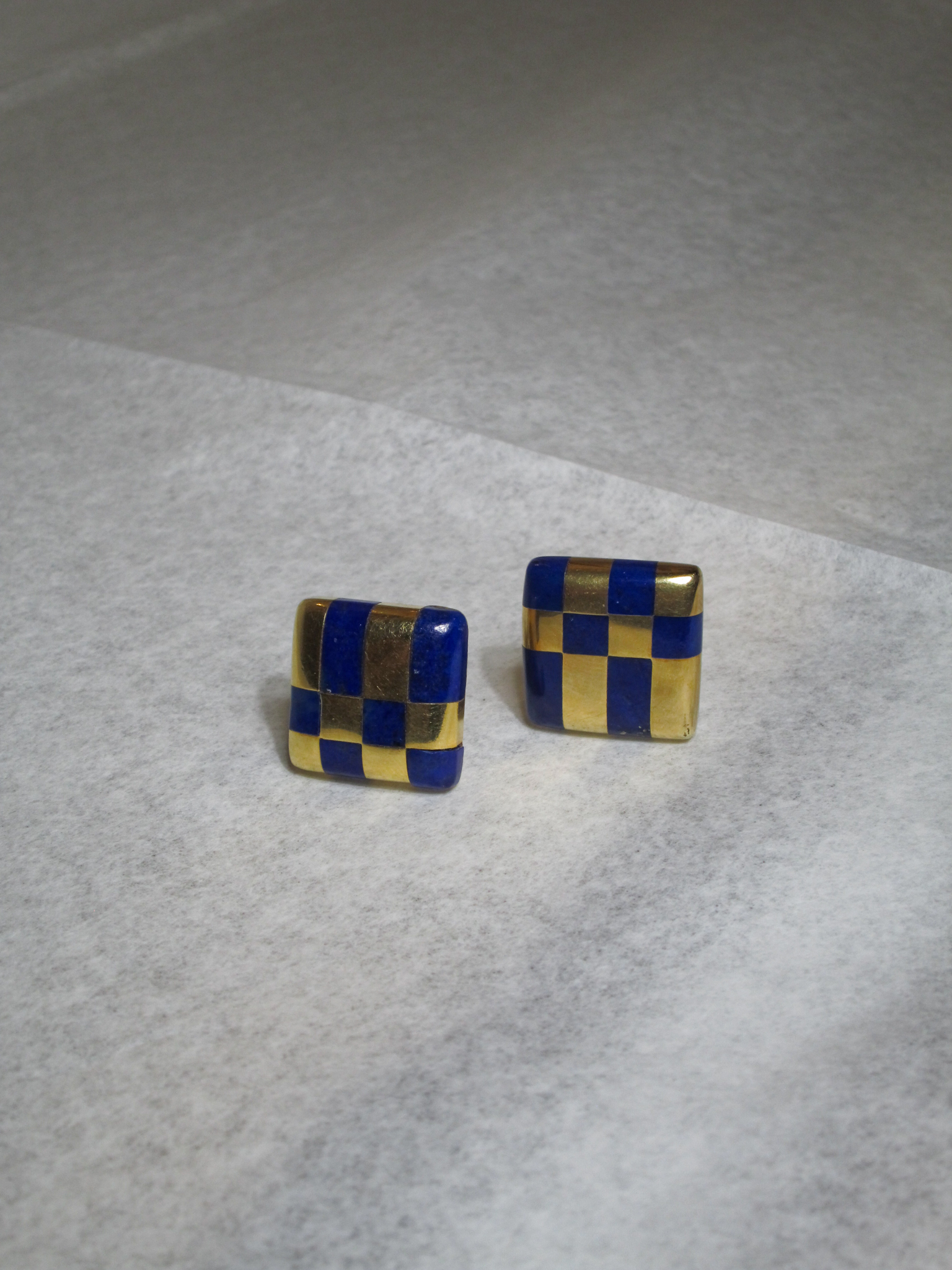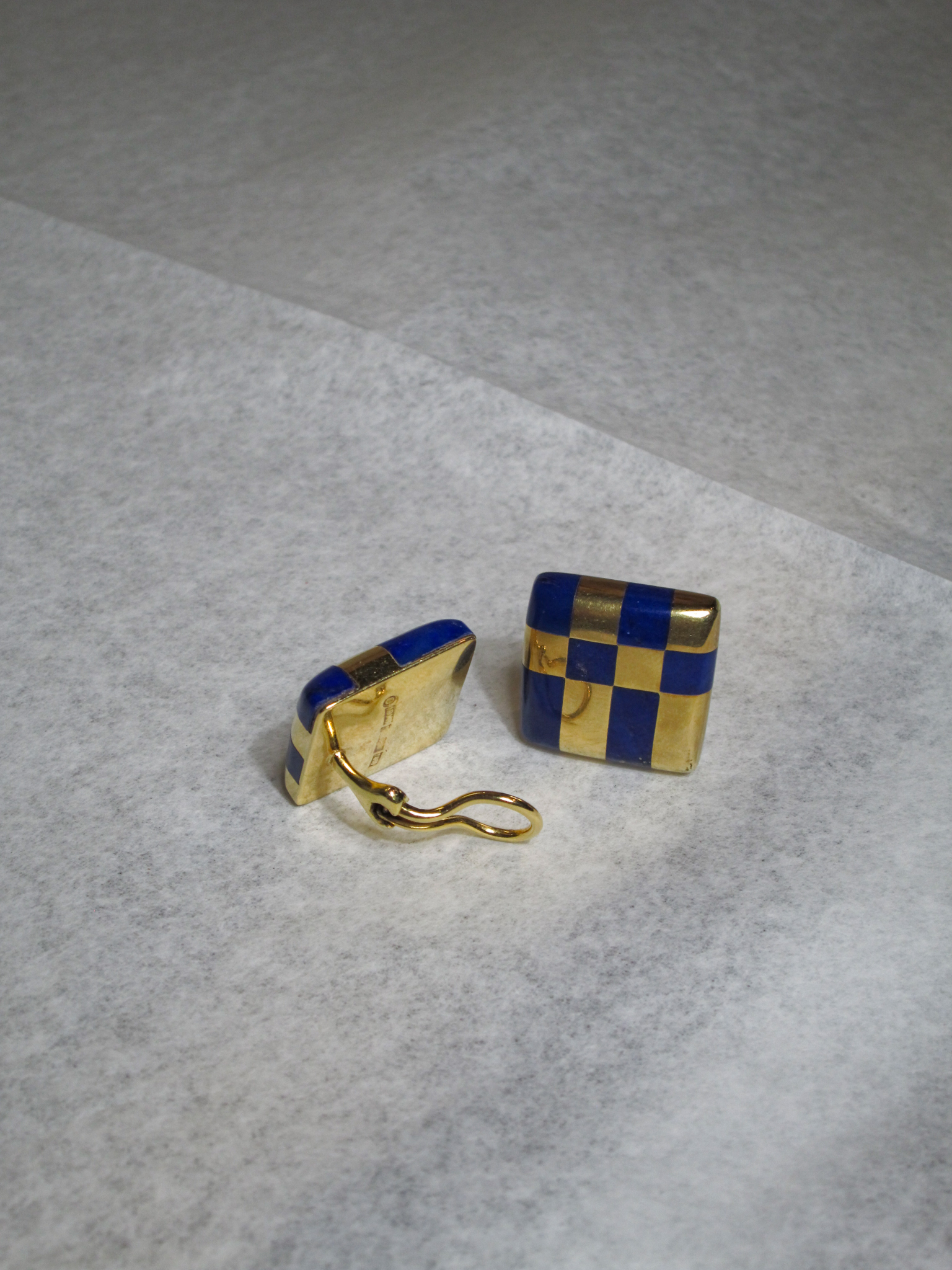 Iconic Tiffany and Co asymmetrical earrings by Angela Cummings in 18k Yellow Gold with vivid Lapis Lazuli